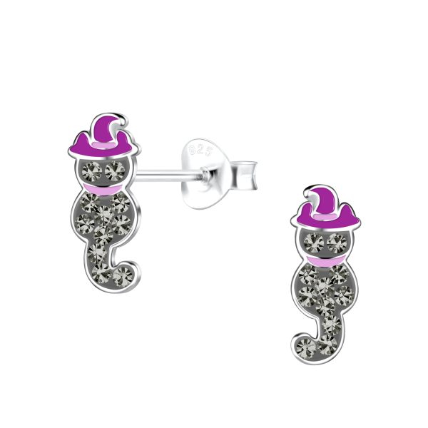Silver Cat Stud Earrings