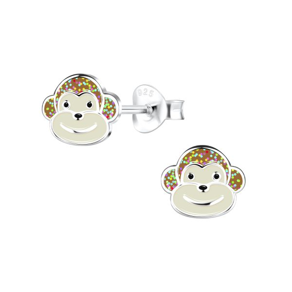 Silver Monkey Stud Earrings