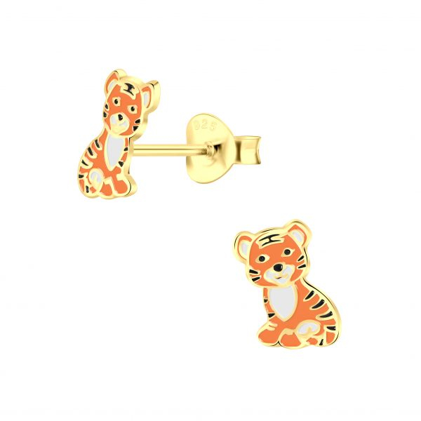 Silver Tiger Stud Earrings