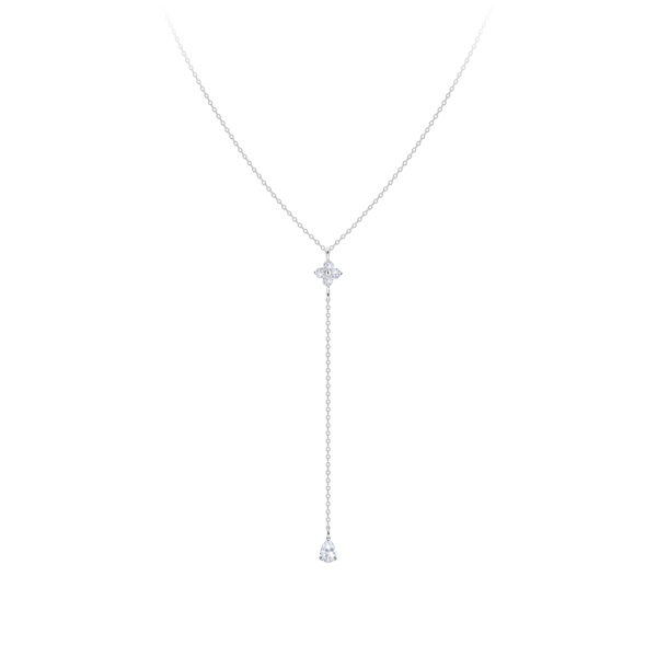 Silver Flower and Teardrop Y Necklace