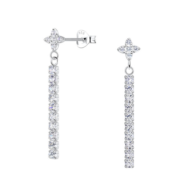 Silver Flower Stud Earrings with Hanging Tennis Chain