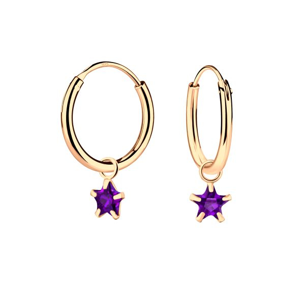 4mm Star Cubic Zirconia Silver Charm Hoop Earrings