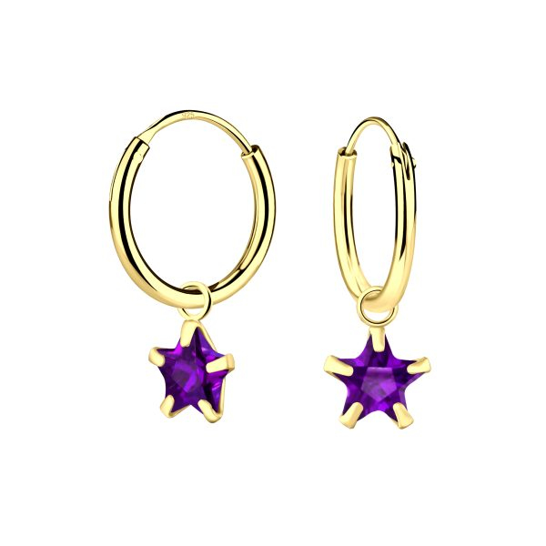 6mm Star Cubic Zirconia Silver Charm Hoop Earrings