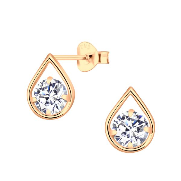 Silver Tear Drop Cubic Zirconia Stud Earrings