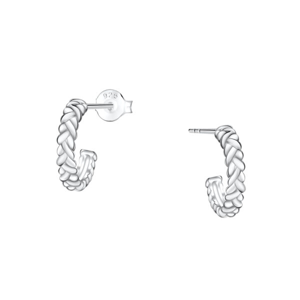 Silver Braid Half Hoop Stud Earrings