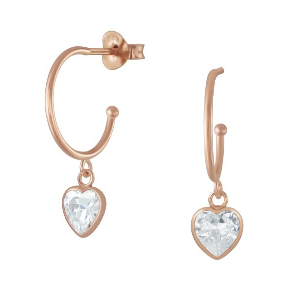 Silver Half Hoop with Hanging Heart Stud Earrings
