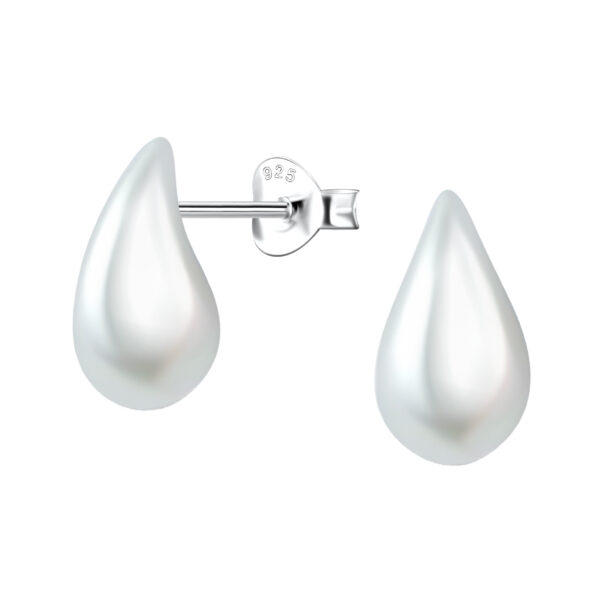 Silver Stud Earrings with Teardrop Plastic Pearl