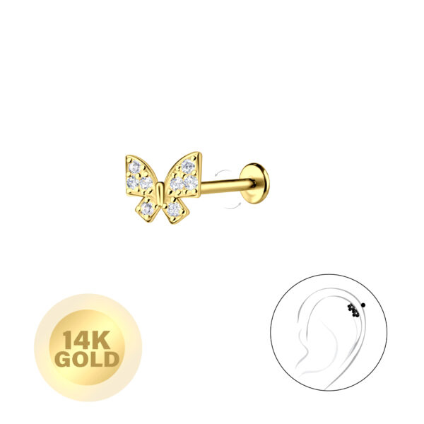 14K Solid Gold - Butterfly Labret with 3mm Disc