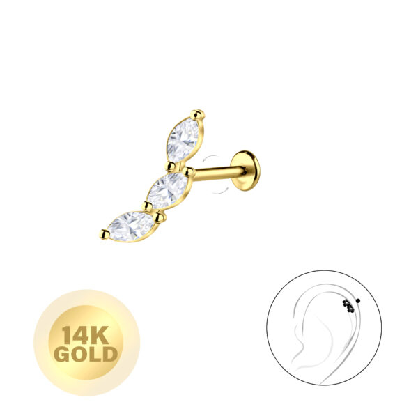 14K Solid Gold - Geometric Labret with 3mm Disc