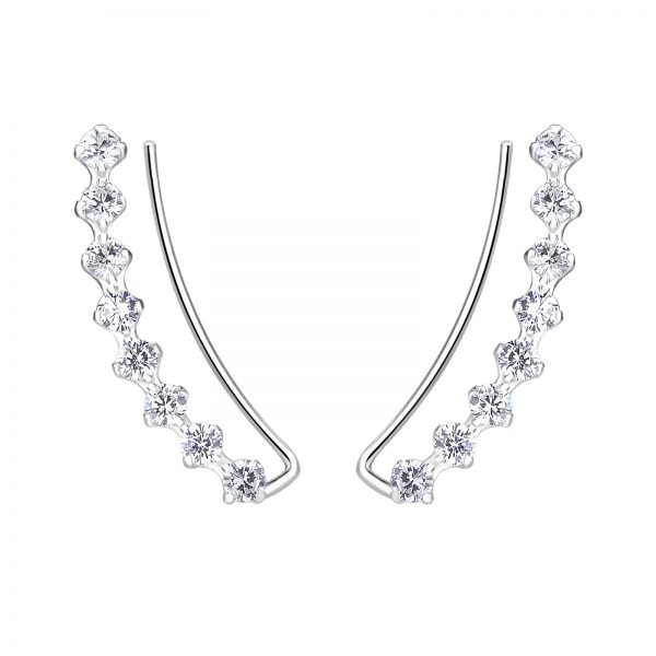 Silver Curved Line Cubic Zirconia Ear Climbers