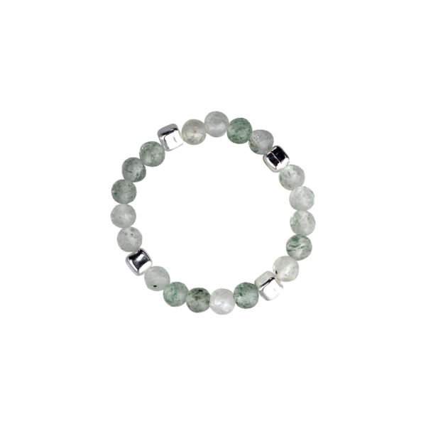 Silver Ball and Green Strawberry Quartz Bead Elastic Ring