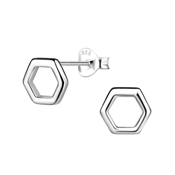 Silver Hexagon Stud Earrings
