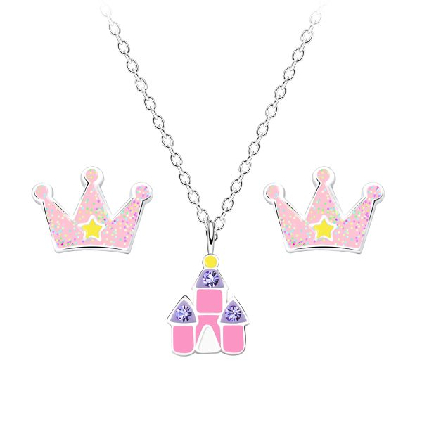 Silver Princess Necklace and Stud Earrings Set