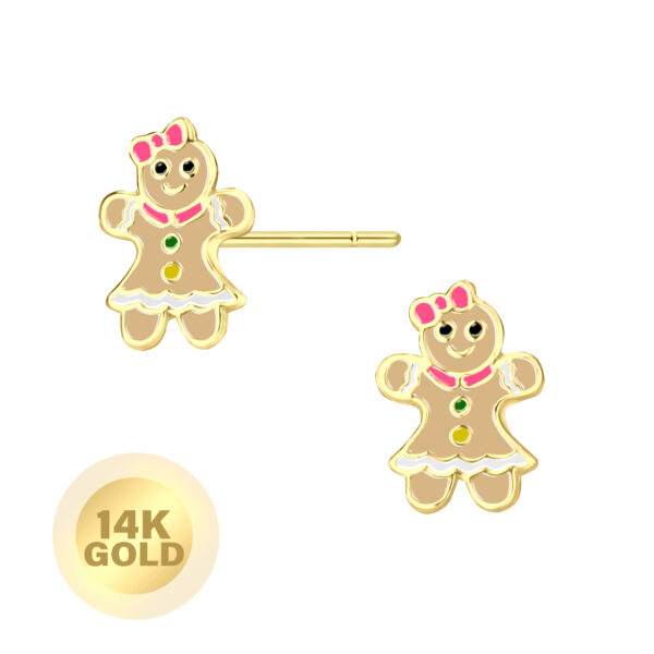 14K Solid Gold - Gingerbread Stud Earrings