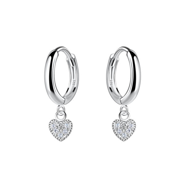 Silver Heart Charm Huggie Earrings