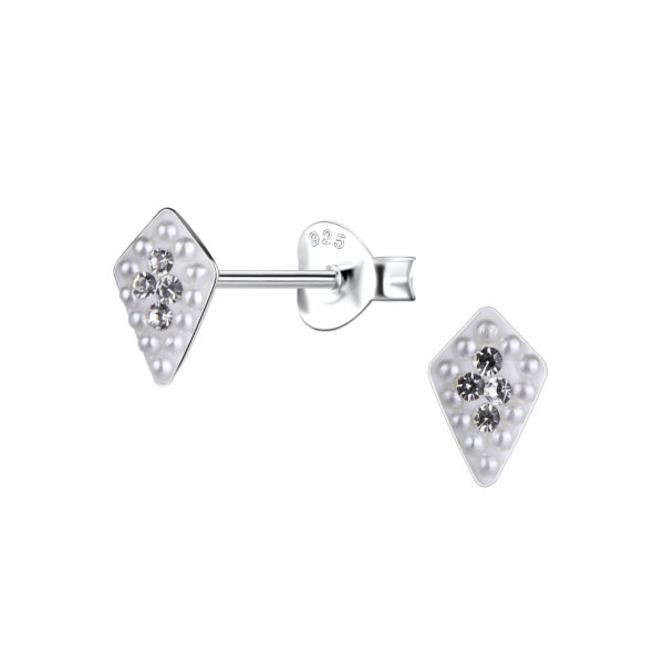 Silver Kite Shaped Stud Earrings with Pearl and Crystal