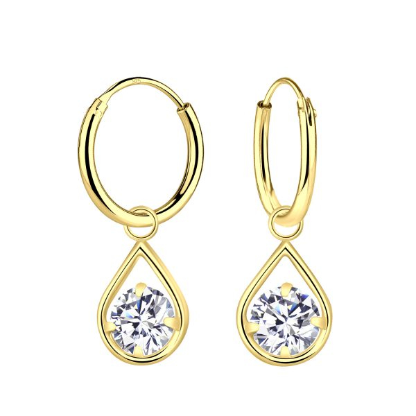 Silver Tear Drop Charm Hoop Earring