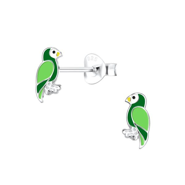 Silver Parrot Stud Earrings