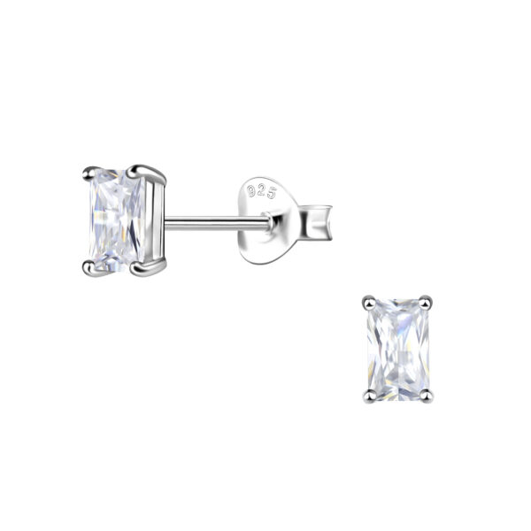 3X5mm Baguette Cubic Zirconia Silver Stud Earrings