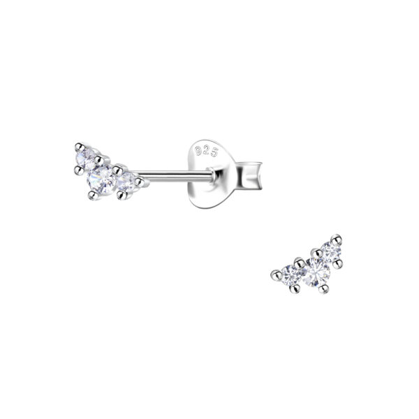Silver Three Stones Stud Earrings
