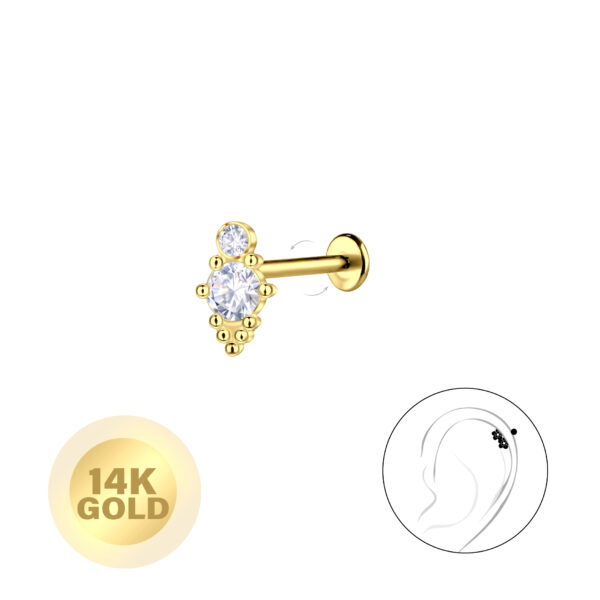 14K Solid Gold - Geometric Labret with 3mm Disc