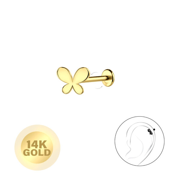 14K Solid Gold - Butterfly Labret with 3mm Disc