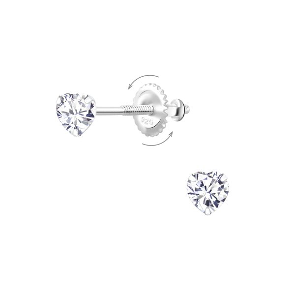 4mm Heart Cubic Zirconia Silver Screw Back Earrings