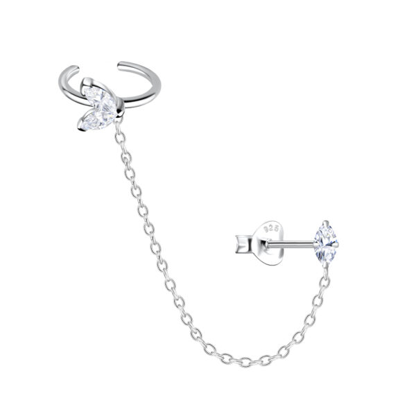 Silver Geometric Stud Earrings and Ear Cuff with Chain
