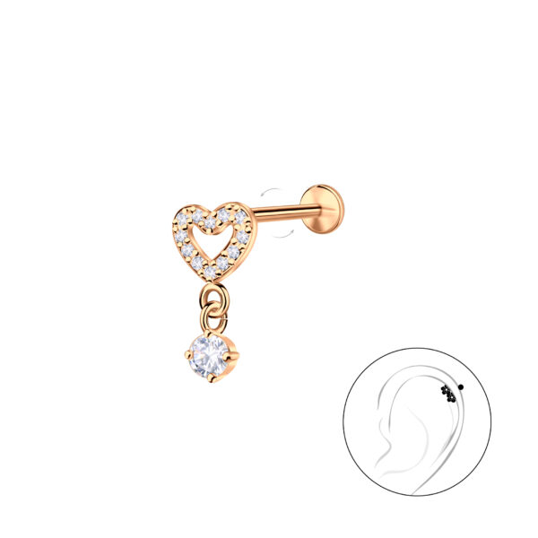 Silver Heart with Hanging Stone with Titanium Labret