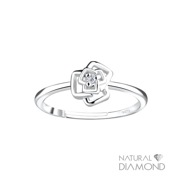 Silver Rose Flower Adjustable Ring With Natural Diamond