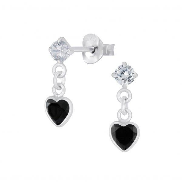 Silver Heart Cubic Zirconia Drop Stud Earrings