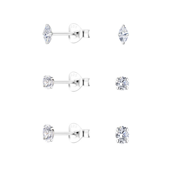 Silver Mixed Cubic Zirconia Stud Earrings Set