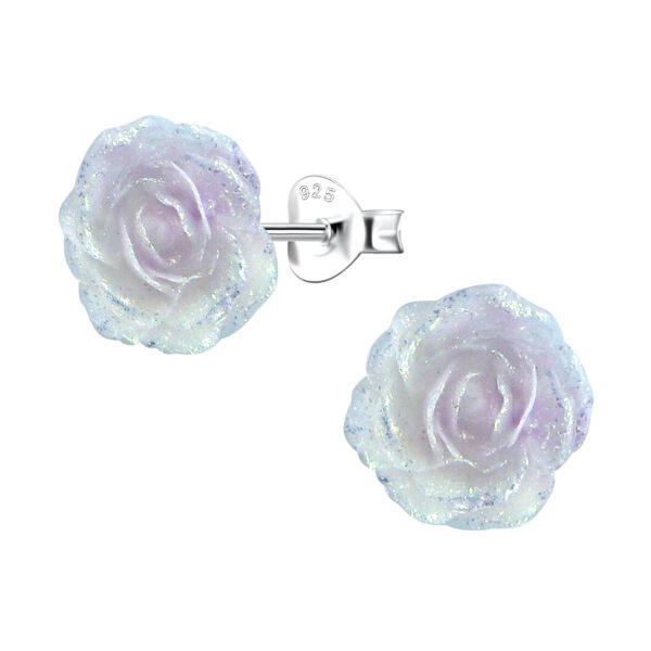 Silver Stud Earrings with Resin Rose