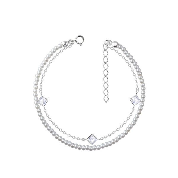 Silver Triple Square Bracelet with Pearl