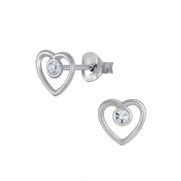 Silver Heart Crystal Stud Earrings