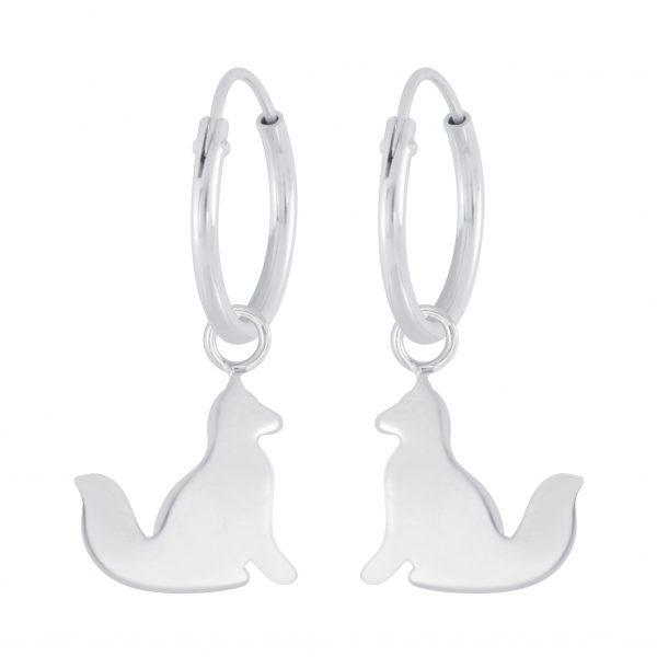 Silver Fox Charm Hoop Earrings