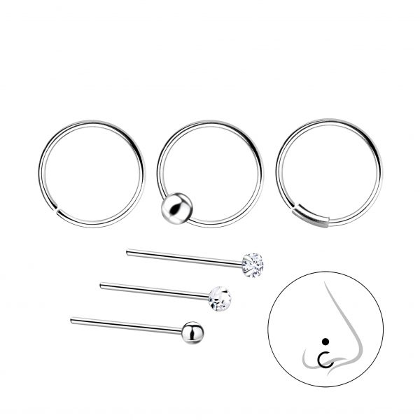 Silver Mixed Nose Jewelry Starter Set - Pack of 6