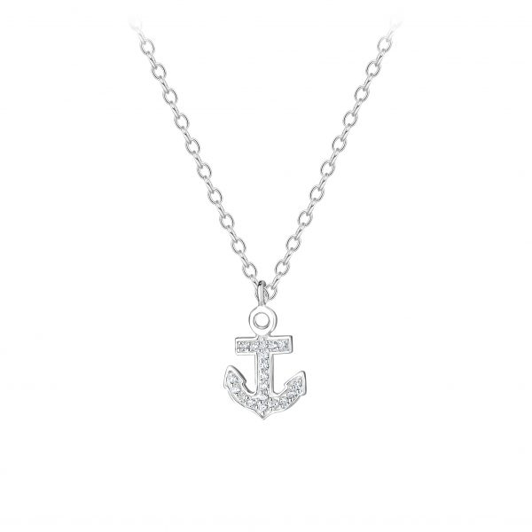 Silver Cubic Zirconia Anchor Necklace
