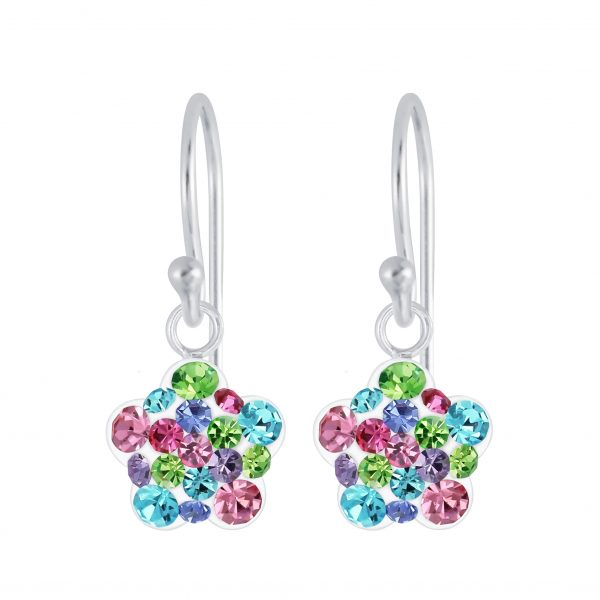 Silver Flower Crystal Earrings