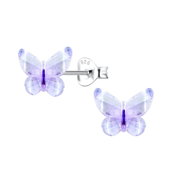 Silver Stud Earrings with Resin Butterfly