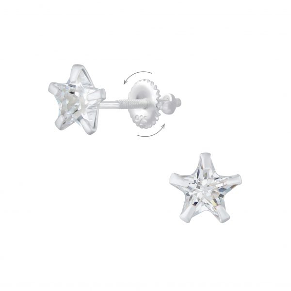 6mm Star Cubic Zirconia Silver Screw Back Earrings