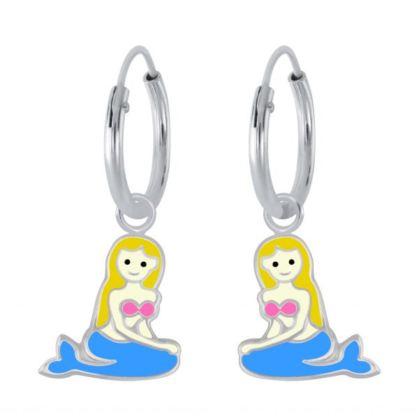 Silver Mermaid Charm Hoop Earrings