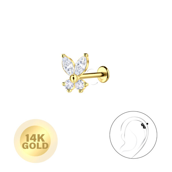 14K Solid Gold - Butterfly Labret with 3mm Disc