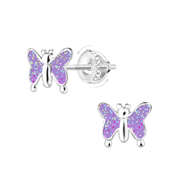 Silver Butterfly Screw Back Earrings