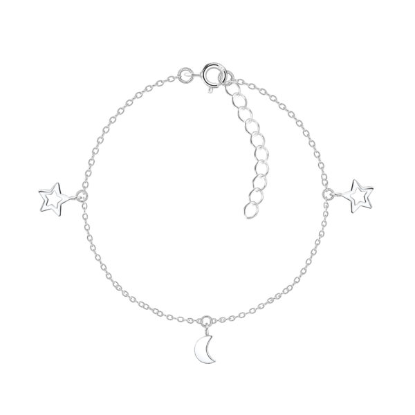 Silver Moon and Star Bracelet