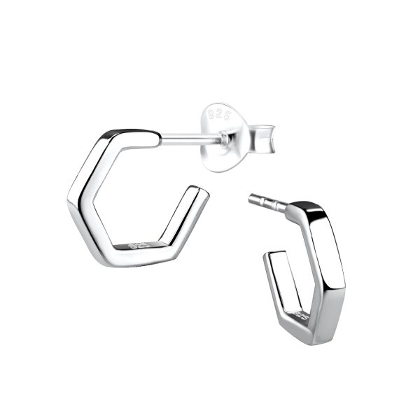 Silver Half Hoop Stud Earrings