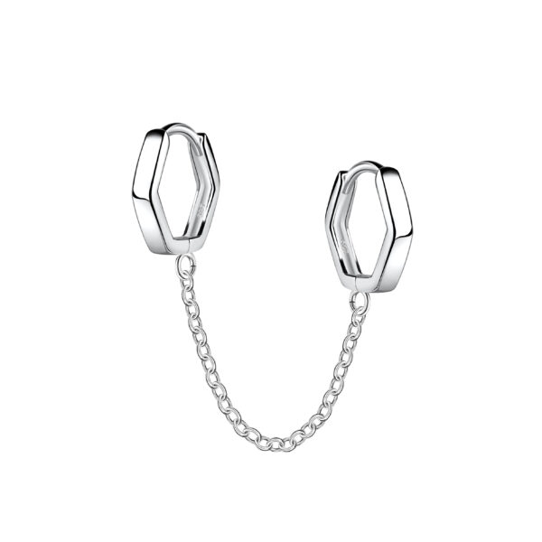 11mm Silver Double Geometric Huggie Earrings with Chain