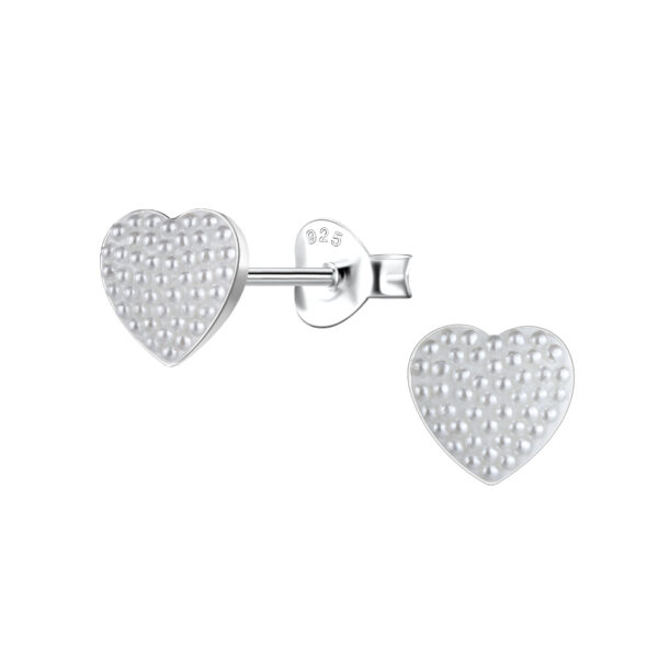 Silver Heart Stud Earrings with Pearl