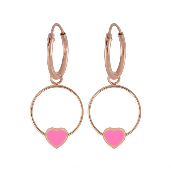 Silver Heart Wire Charm Hoop Earrings