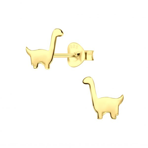 Silver Brachiosaurus Dinosaur Stud Earrings